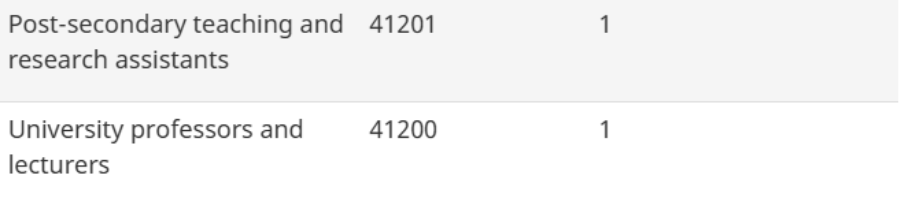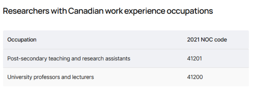 Categoria nova 1: Researchers and Senior Managers com experiência de trabalho no Canadá
