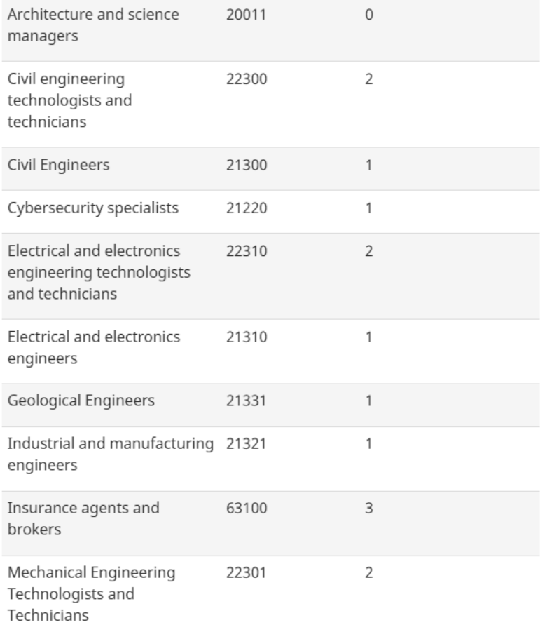 A imigração continuará realizando rodadas de convites para selecionar candidatos com forte domínio do francês e experiência profissional nas seguintes categorias, que estavam em vigor em 2025: