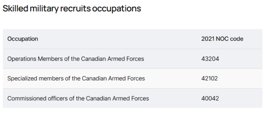 C 3: Foreign Military onde candidatos militares estrangeiros altamente qualificados são recrutados pelas Forças Armadas Canadenses para funções-chave, como médicos militares, enfermeiros e pilotos.