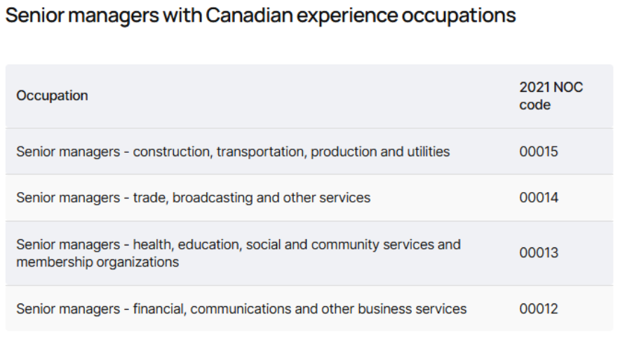 8. Senior managers with Canadian work experience